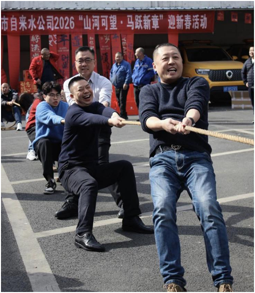 为迎接2026年新春佳节,凝聚职工奋进力量,营造团结协作、昂扬向上的企业文化氛围,近日,广汉市自来水公司组织举办了“山河可望·马跃新章”迎新春主题活动。全体干部职工积极参与,以饱满的热情投入到丰富多彩的集体项目中,展现了供水人团结拼搏的精神风貌。