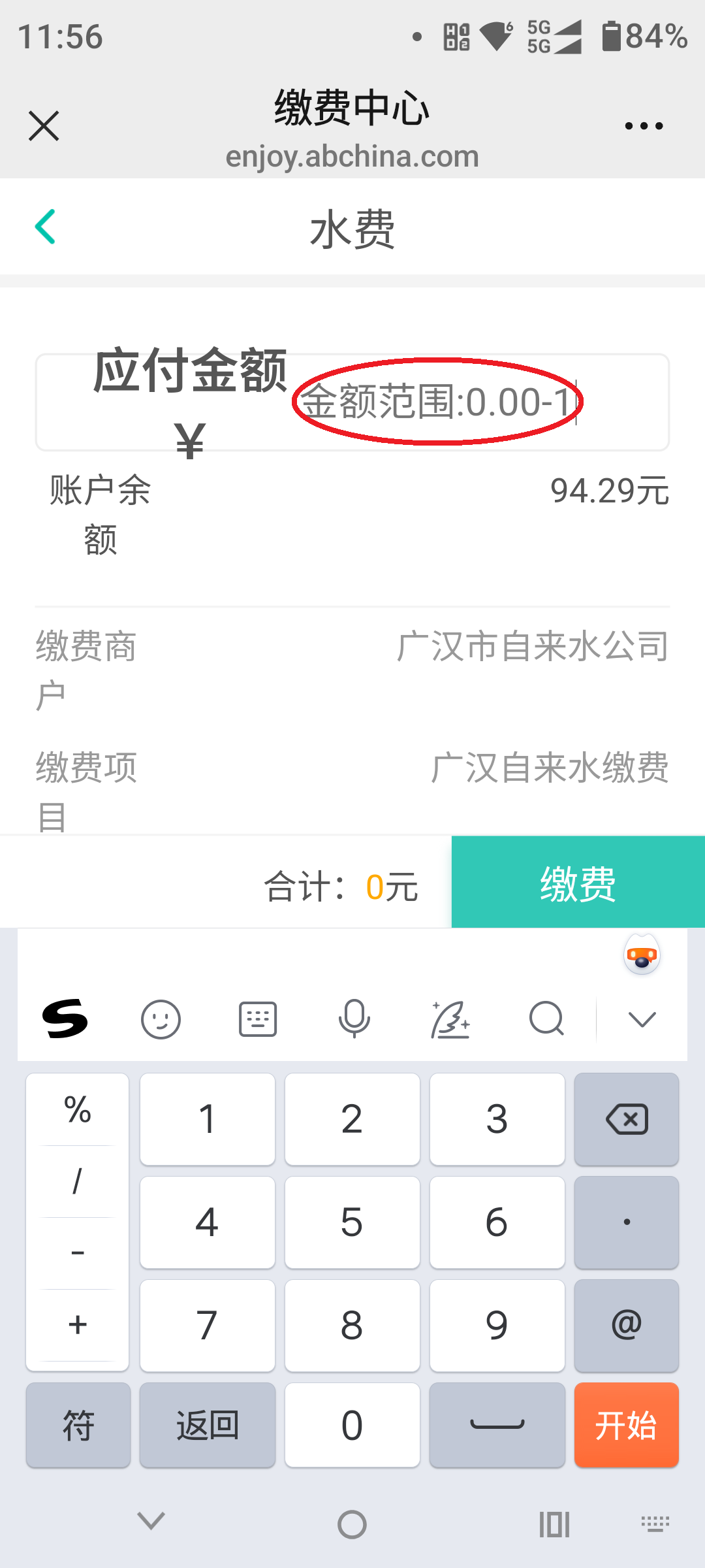 ⑤点击金额输入框输入金额然后点击“缴费”完成充值