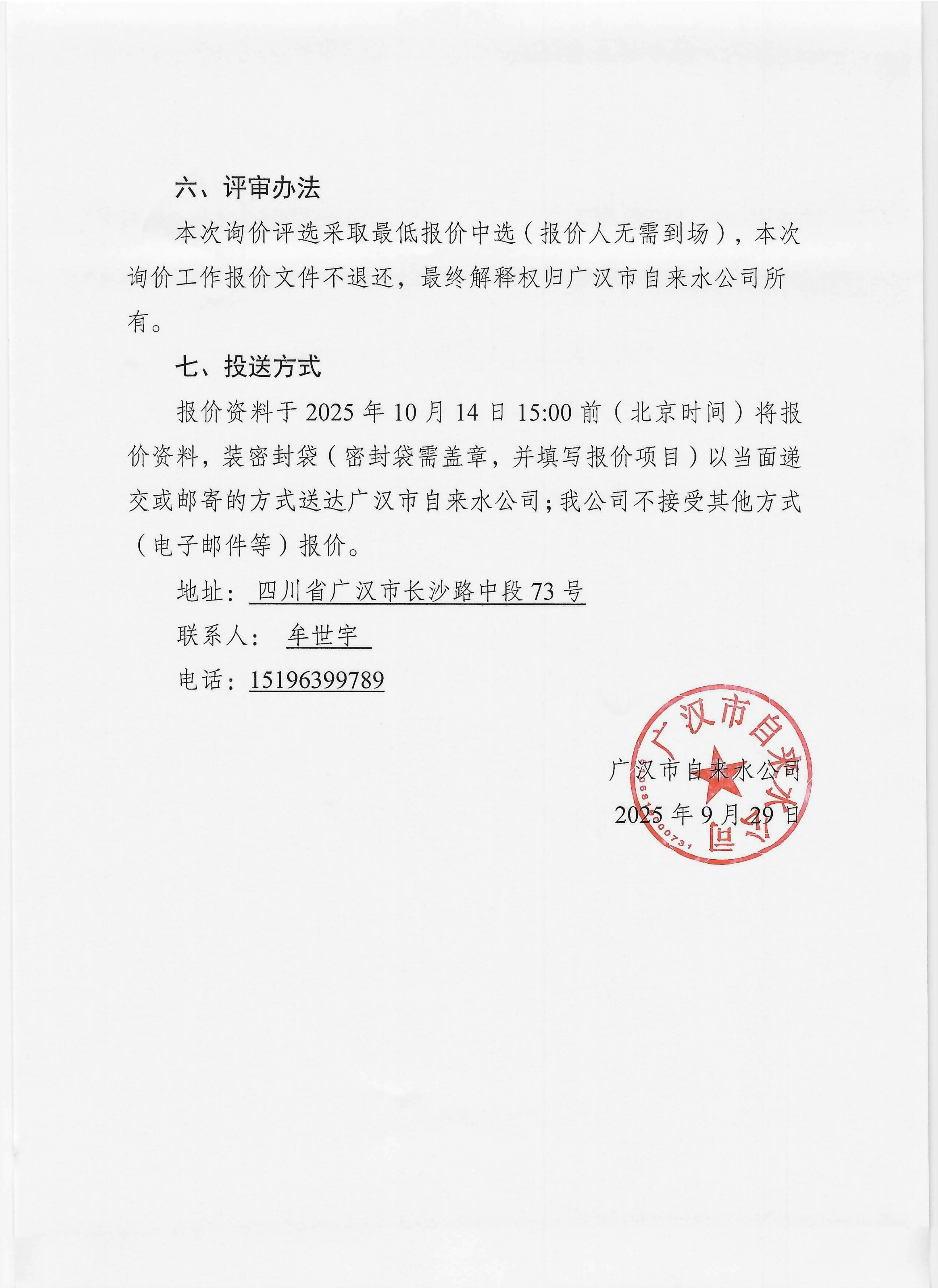 广汉市自来水公司采购PE钢丝网骨架及管件项目询价单